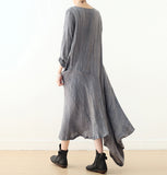 Gray casual summer Women Dresses Irregular long women dresses With Pockets AMT962315