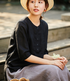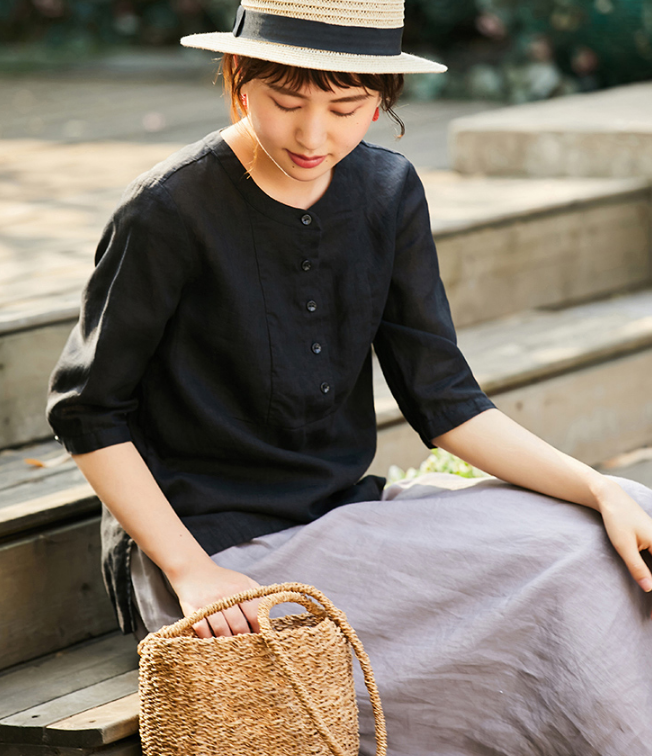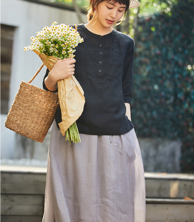 Organic Linen color Loose Style Women Linen Tops.loose style,soft and breathy