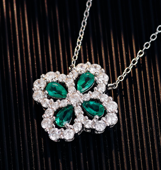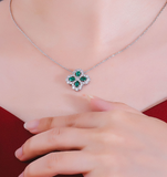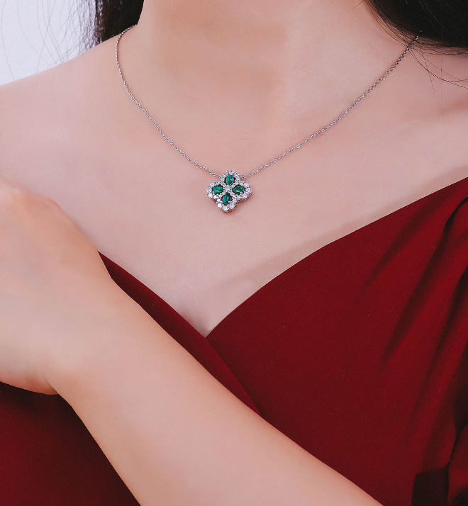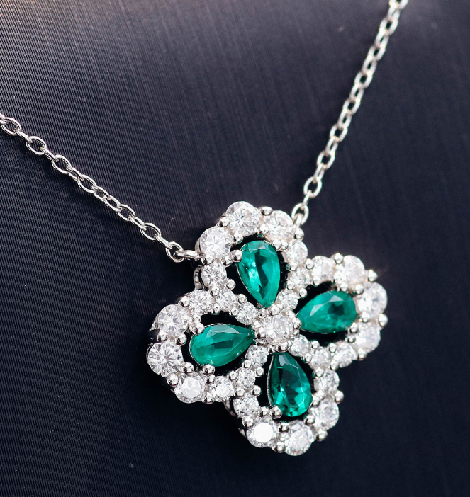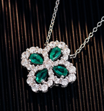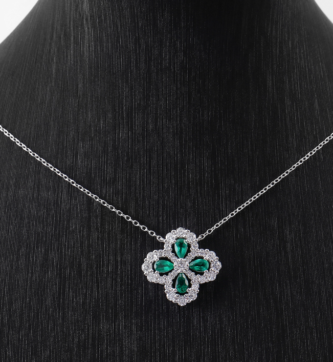 Clover Necklace, Sterling Silver Emerald Necklace, Birthday Gift, 1202