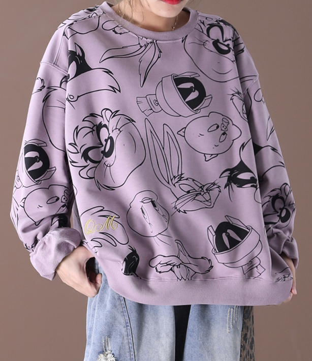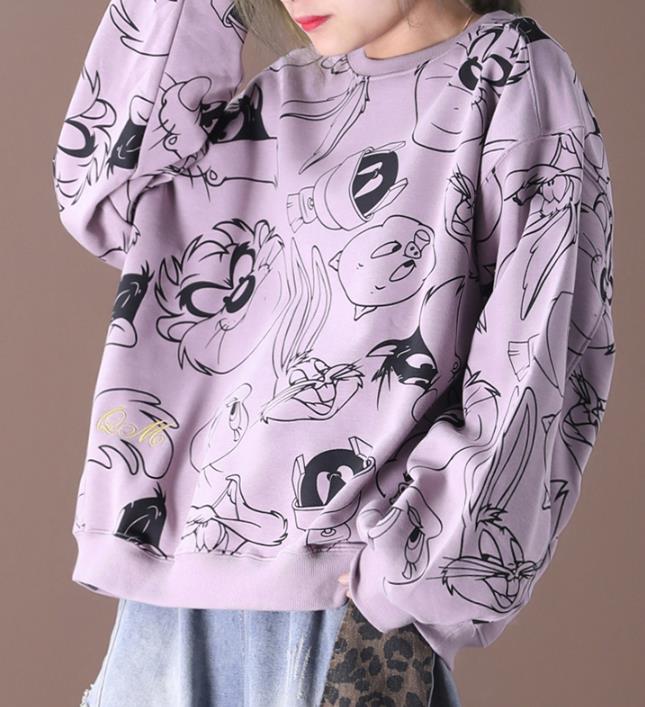 Cartoon Print Women Casual Blouse Linen Shirts Loose Blouse Plus Size Women Tops WG961707