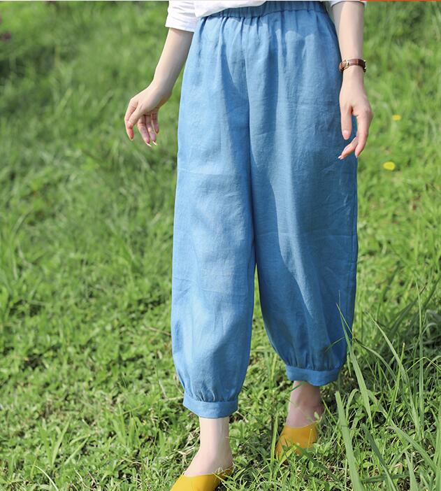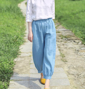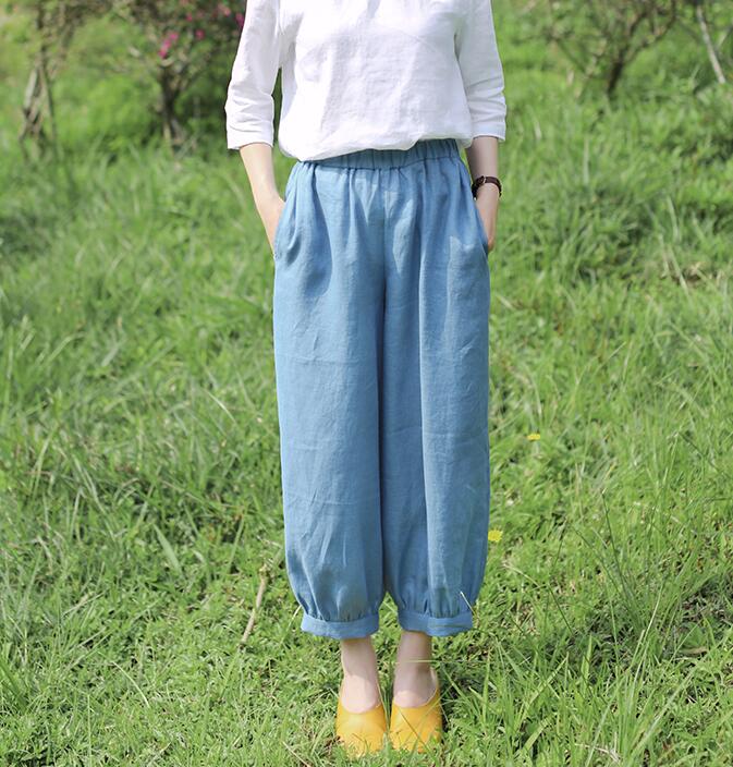 Linen Organic color Loose Style linen Spring summer Autumn Women pants.loose style,soft and breathy organic 100% fabric,very special with it's loose design.this women pants also could be custom made any size.