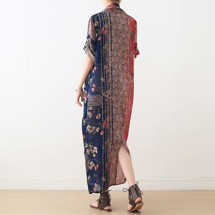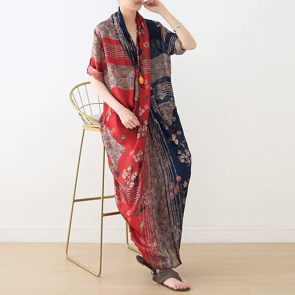 Floral Silk Loose Long Dresses Plus Size AMT962328