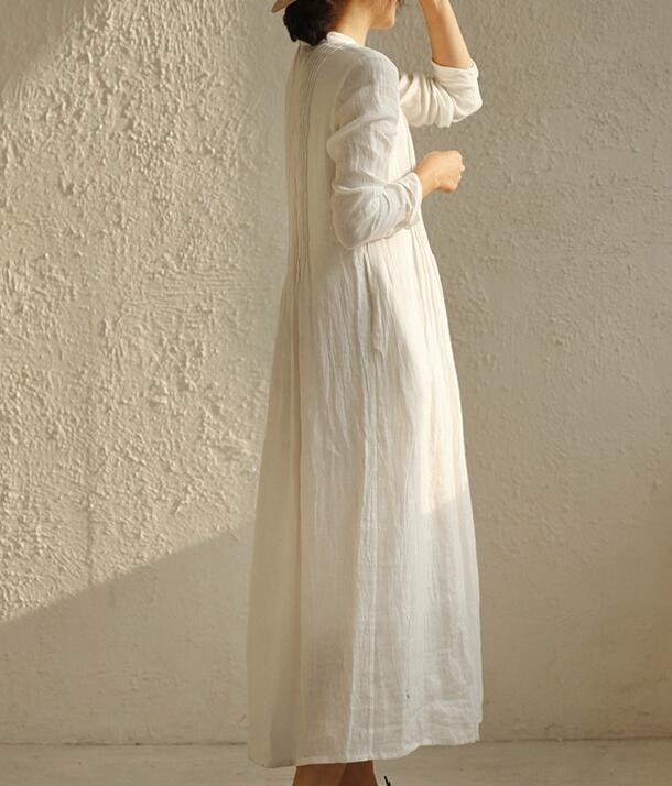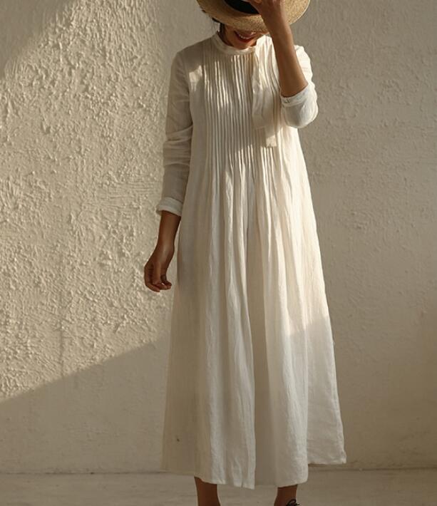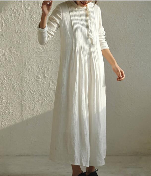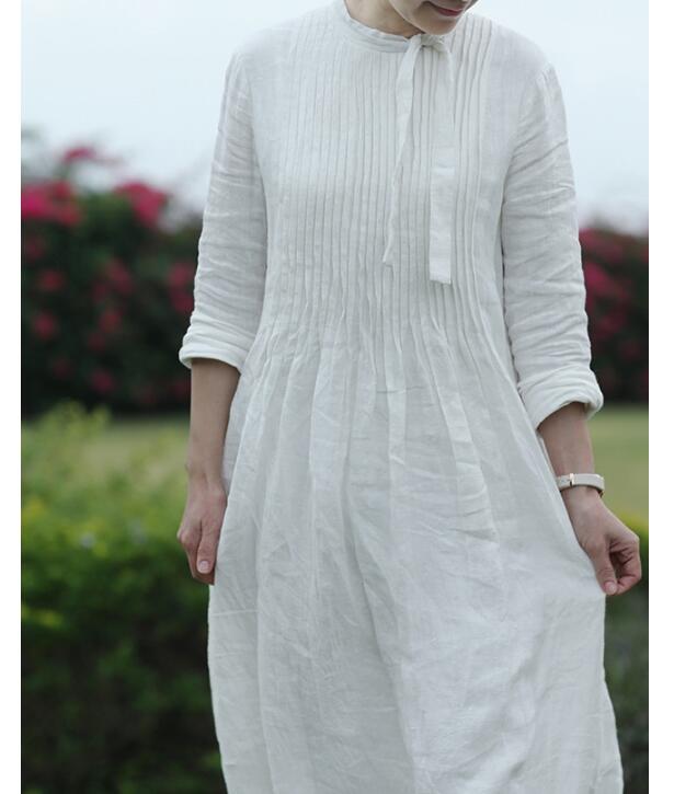 Pleated Women Dresses Ramie Casual Spring Linen Women Dresses SSM97215