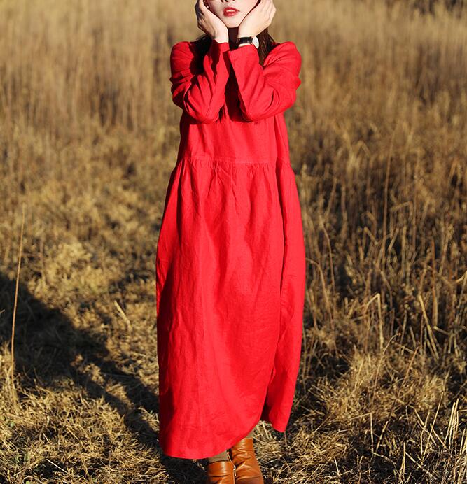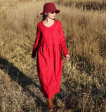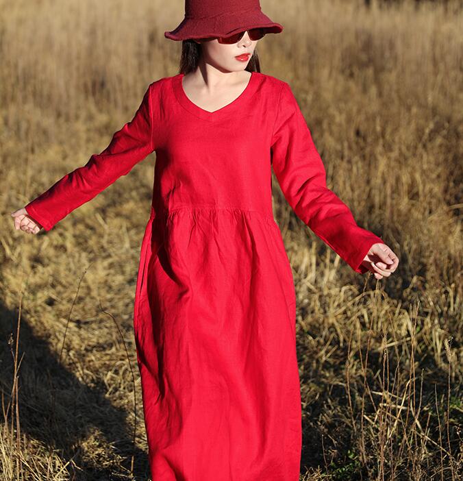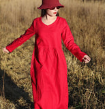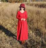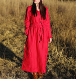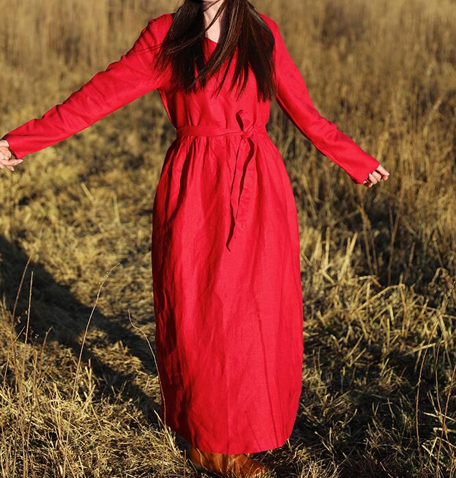 Red Women Dresses Ramie Casual Spring Linen Women Dresses With Waist BeltSSM97215