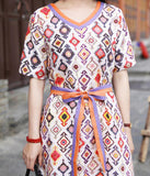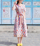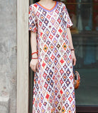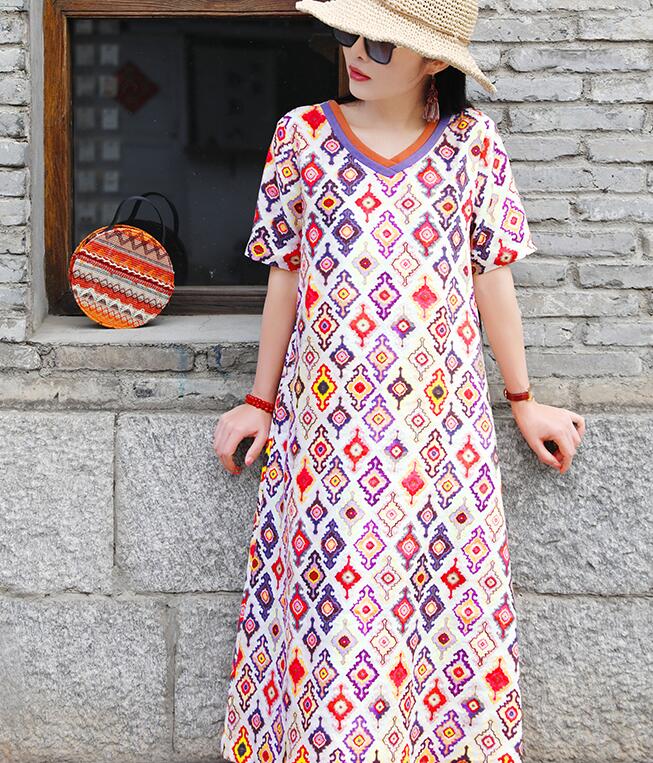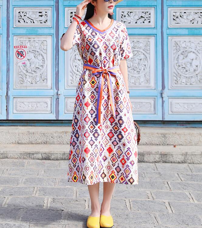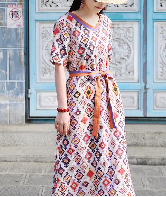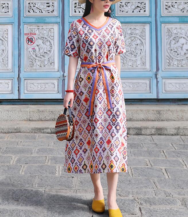 Print V Neck Women Dresses Ramie Casual Spring Linen Women Dresses SSM97215