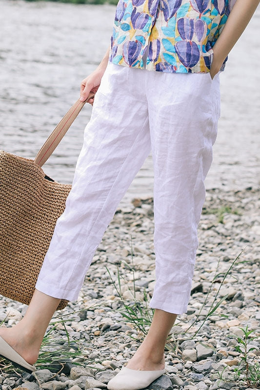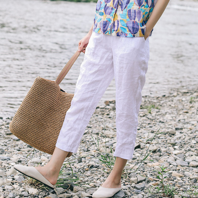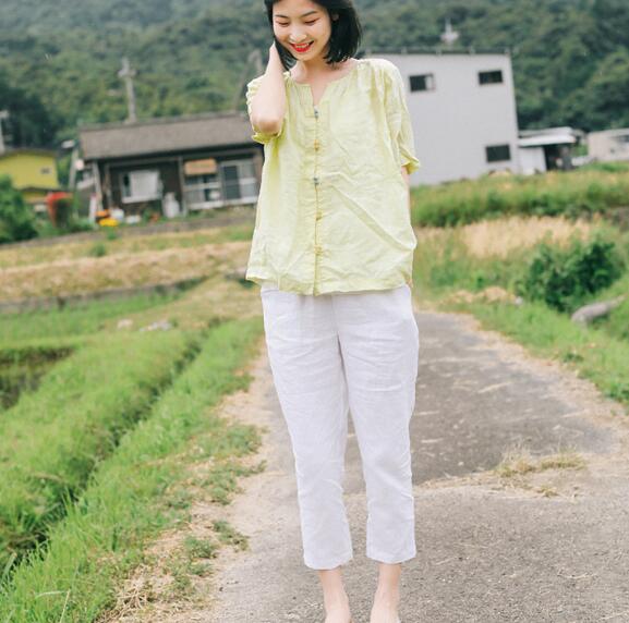 Linen Organic color Loose Style linen Spring summer Women pants.loose style,soft and breathy organic 100% linen fabric,very special with it's waist pleated design.this women pants also could be custom made any size.