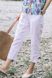 Green Linen Summer Women Casual Pants with Pockets SJ97138