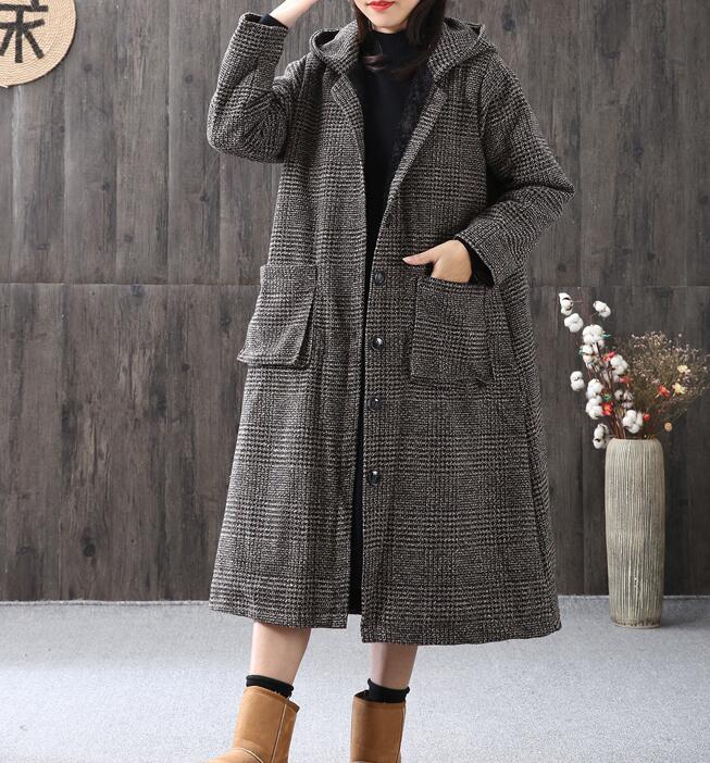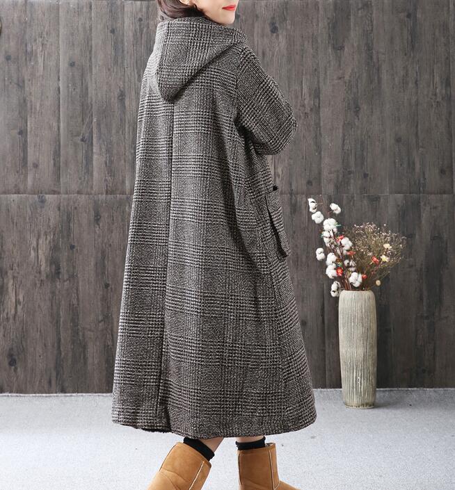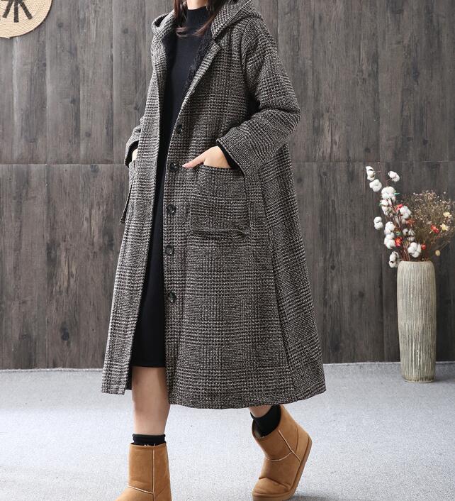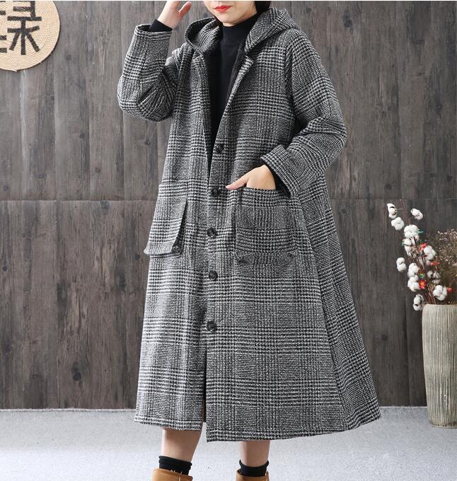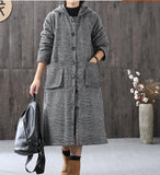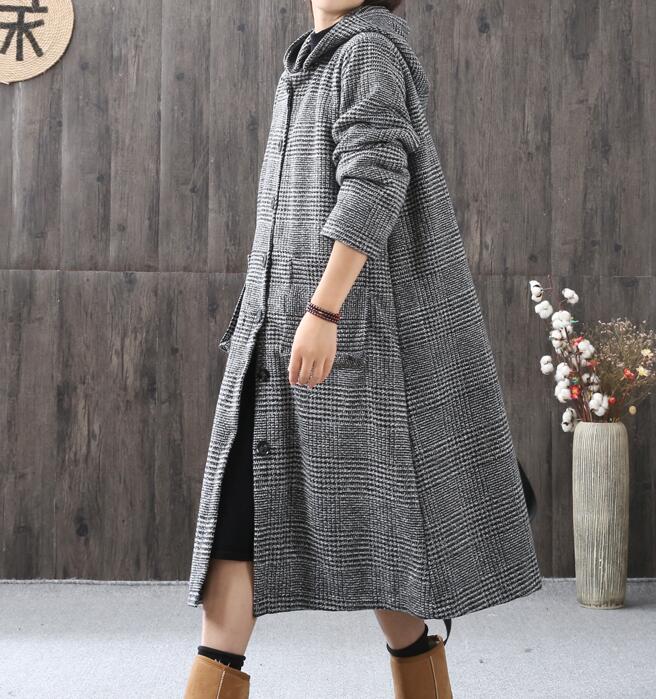 Gray Women Coat Handmade Bat Sleeve loose Hooded Women Wool Coat Jacket