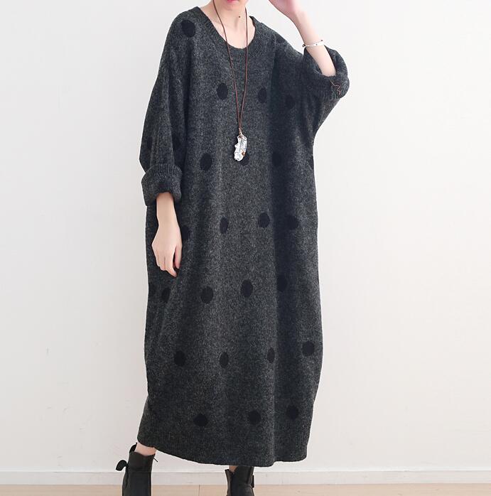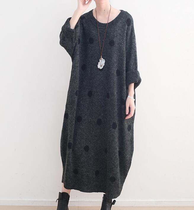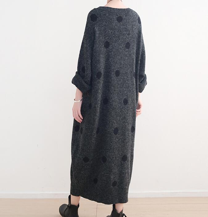 Loose Dot High Collar Knit Long Women Dresses AMT962328