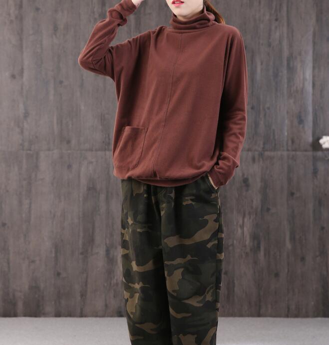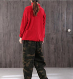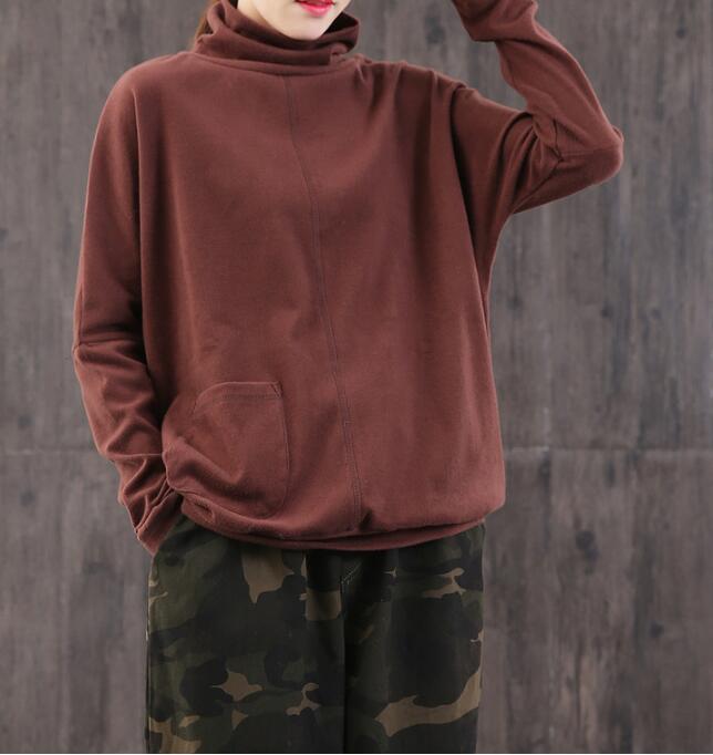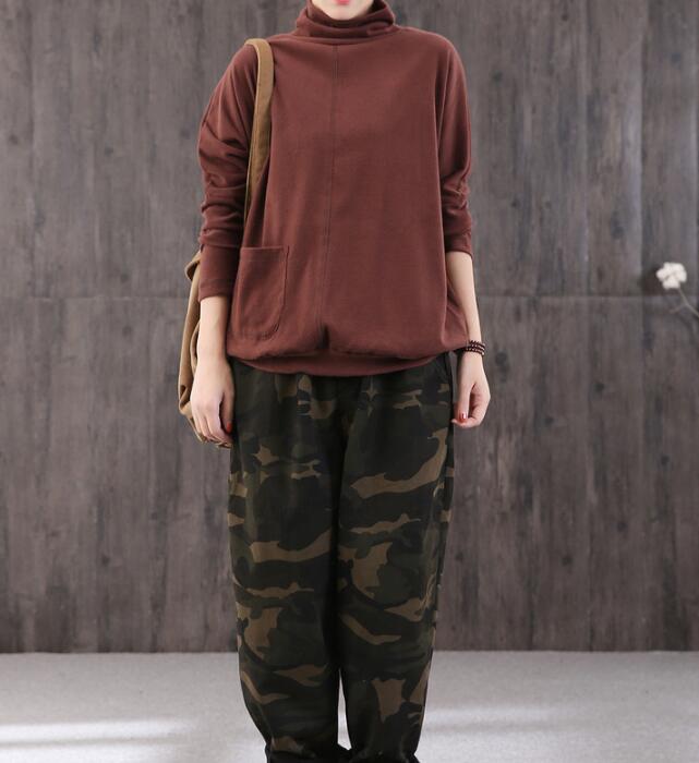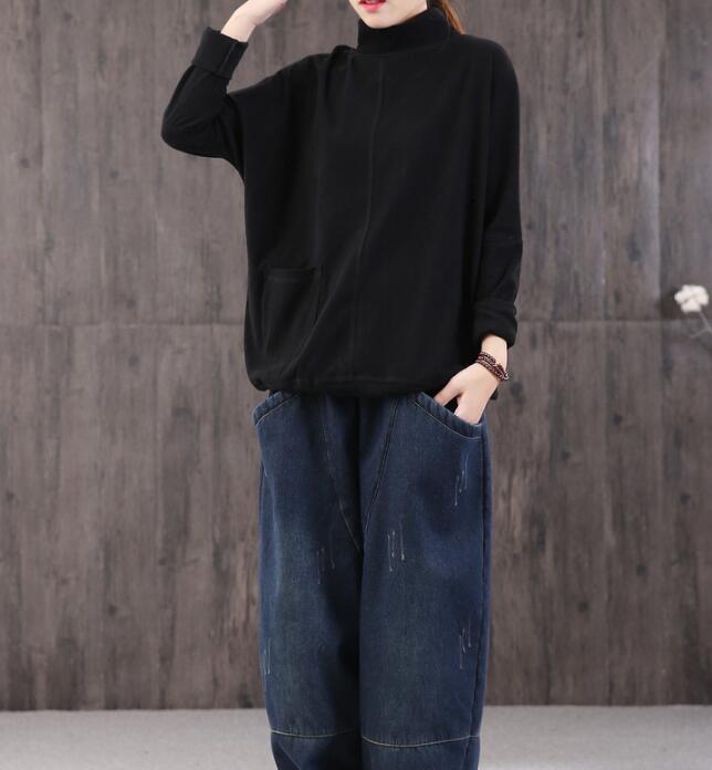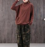 High Collar Loose Blouse Spring Casual Women Tunic Cotton Tops WG961707