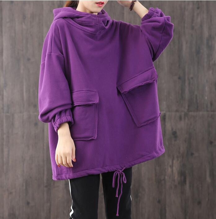 Hooded Loose Blouse Spring Tunic Casual Women Shirts Cotton Tops WG961707