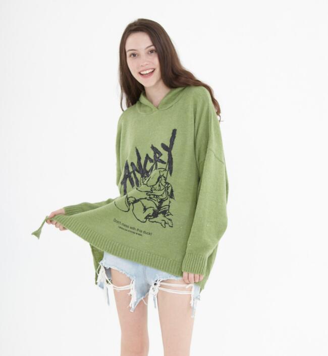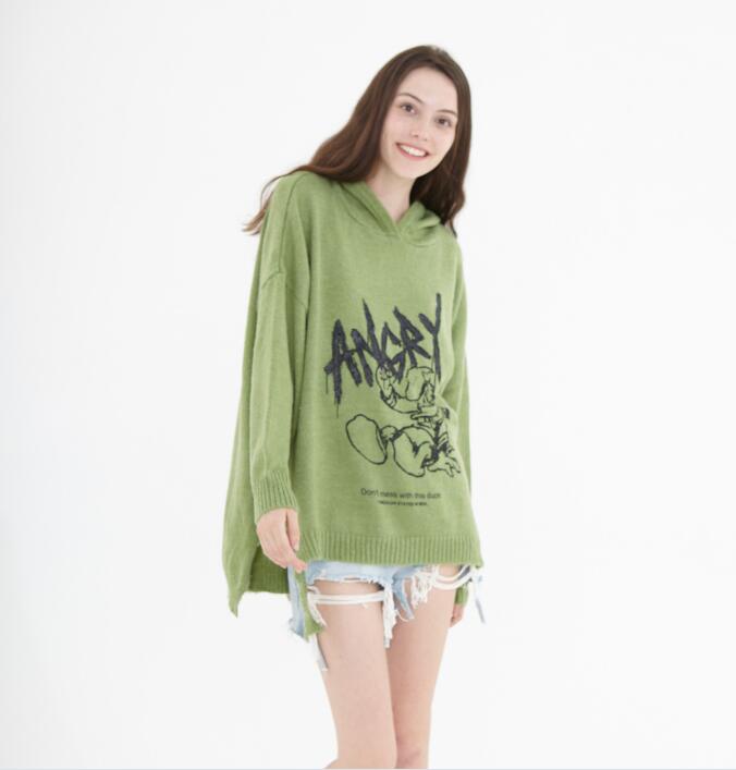 Hooded Irregular Hem loose Women Tops Woolen Knit Sweater