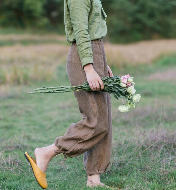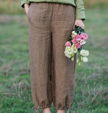 Linen Organic color Loose Style linen Spring summer Women pants.loose style,soft and breathy organic 100% linen fabric,very special with it's waist pleated design.this women pants also could be custom made any size.