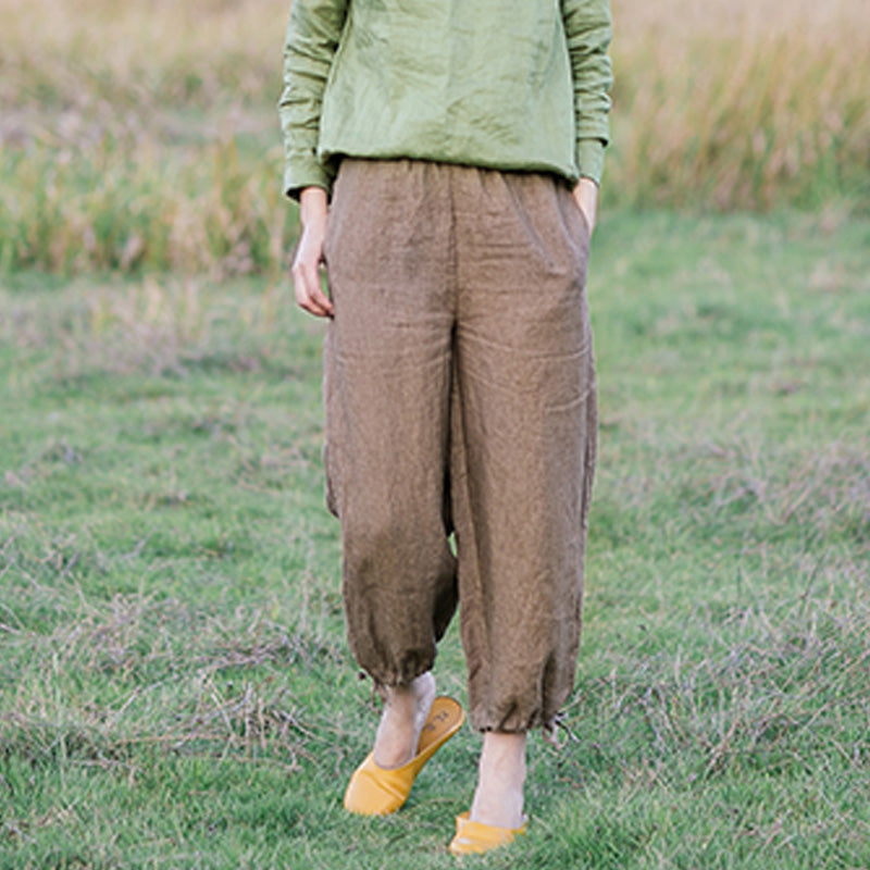 Coffee Linen Summer Women Casual Pants SJ97137