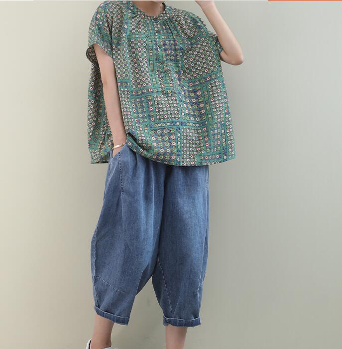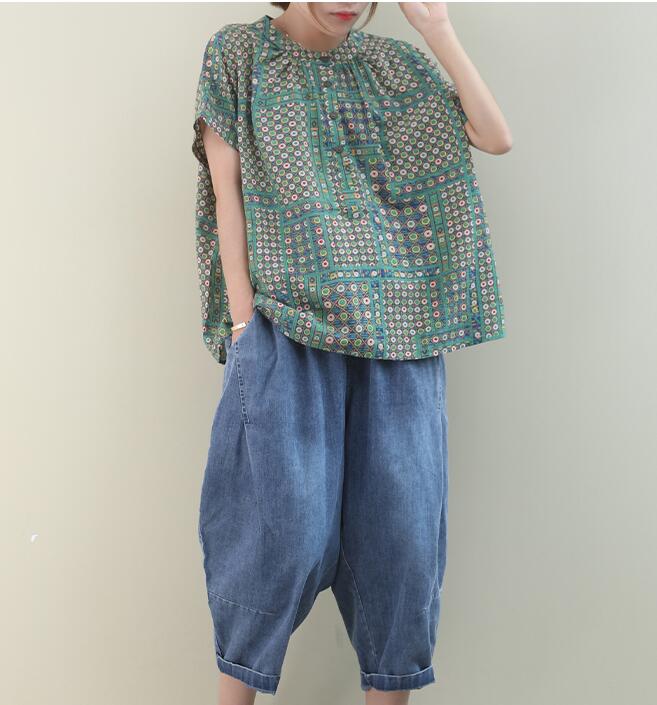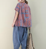 Dotted Loose Casual T-Shirts Summer Women Cotton Tops 1707
