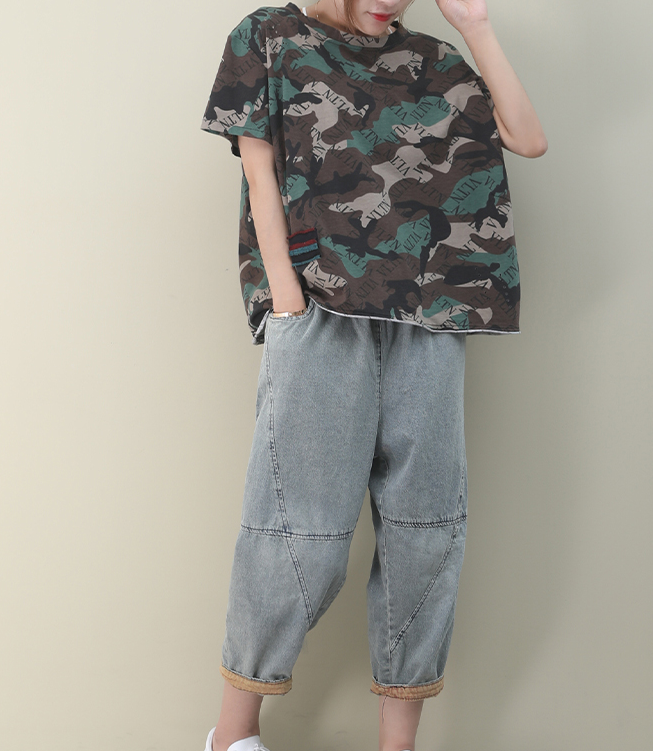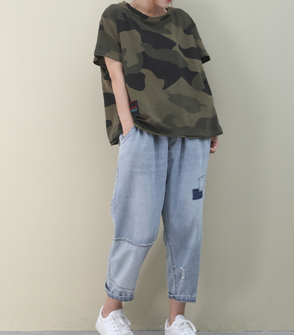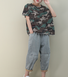 Loose Casual T-Shirts Summer Women Cotton Tops 8811