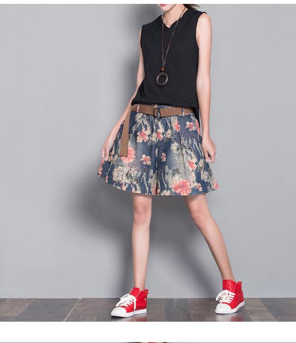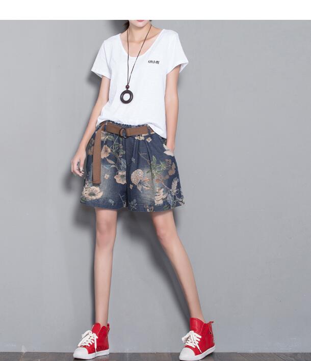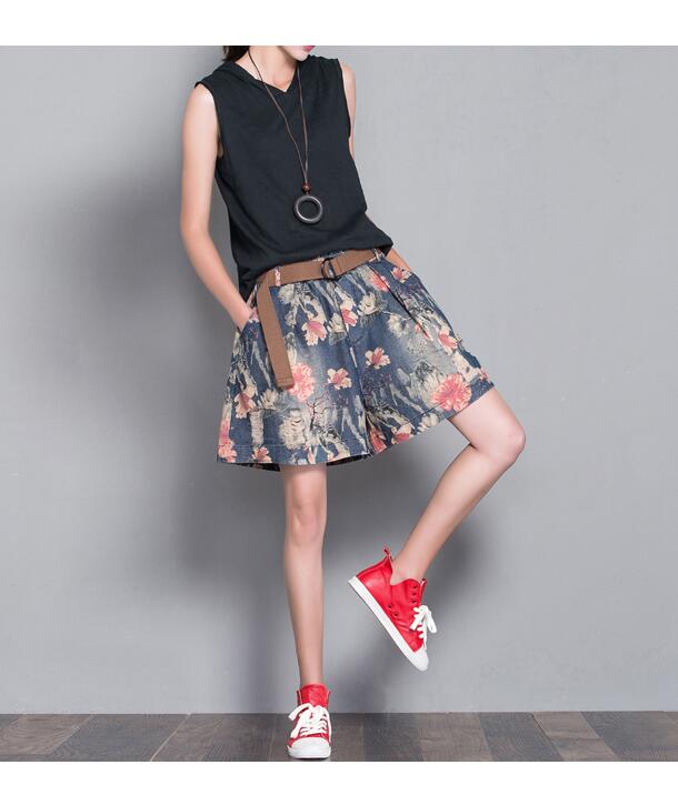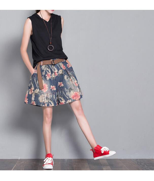 Floral Loose Denim Cotton Pants Summer Women Shorts