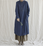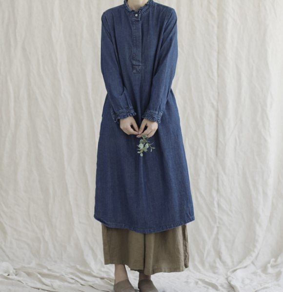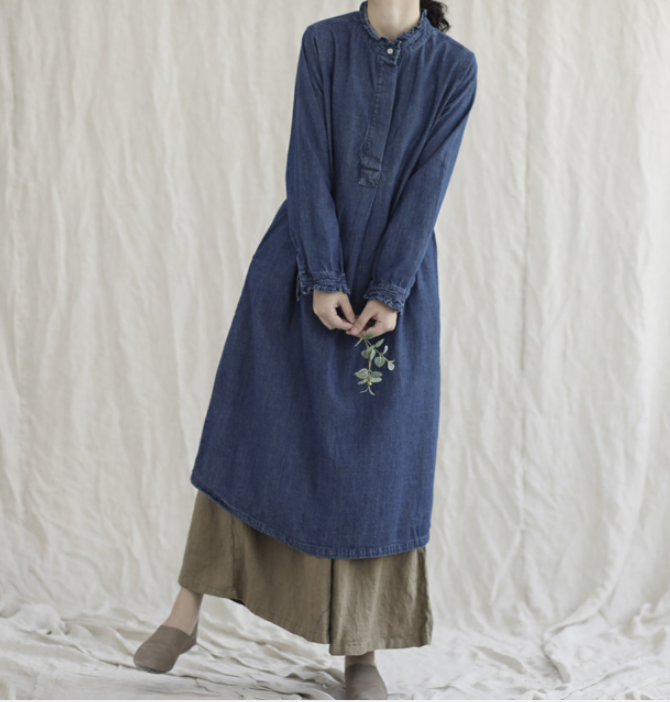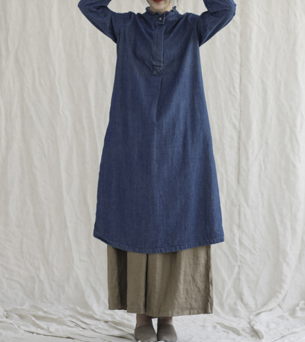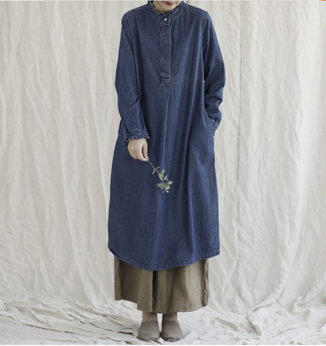 Denim Loose Long Sleeve Line Women Dress YM201229