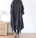 Irregular Hem Loose Plus Size Dress Knit Women Autumn Spring Fashion Long Sleeve DressesAMT962328