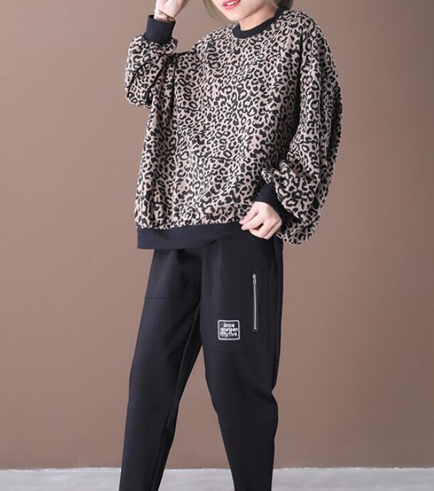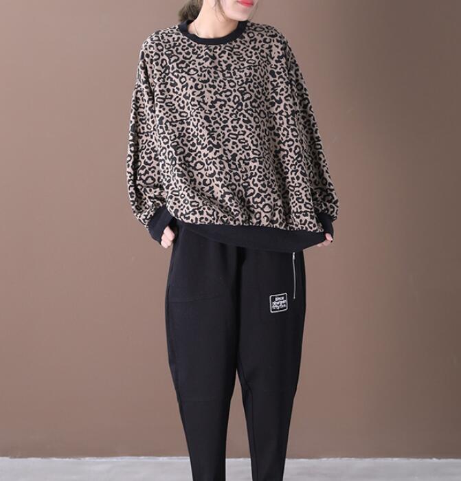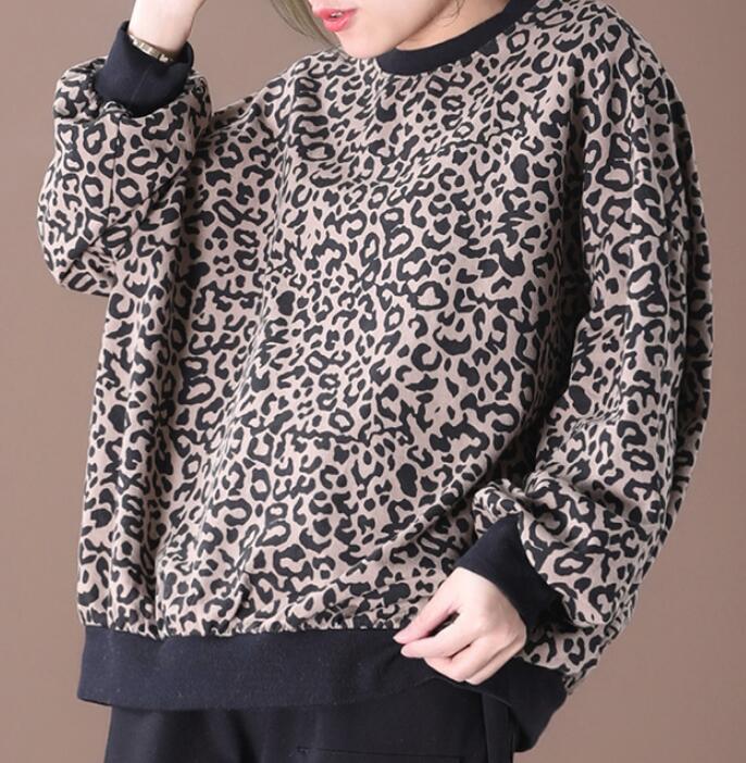 Leopard Print Loose Spring Casual Women Tunic Cotton Tops WG961707