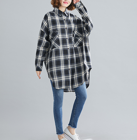 Plaid Loose Women Casual Linen Shirts Summer Women Tops
