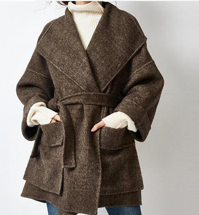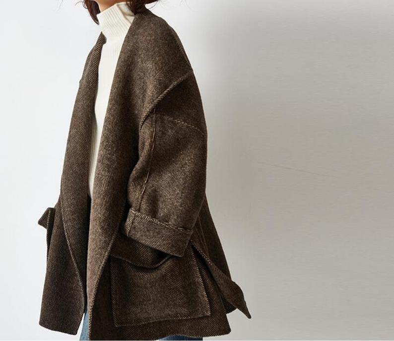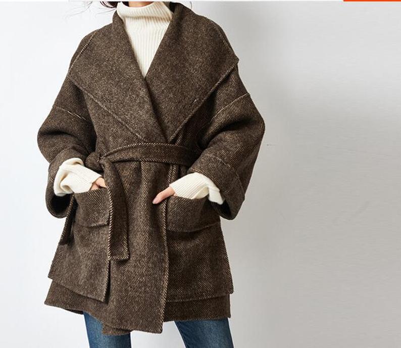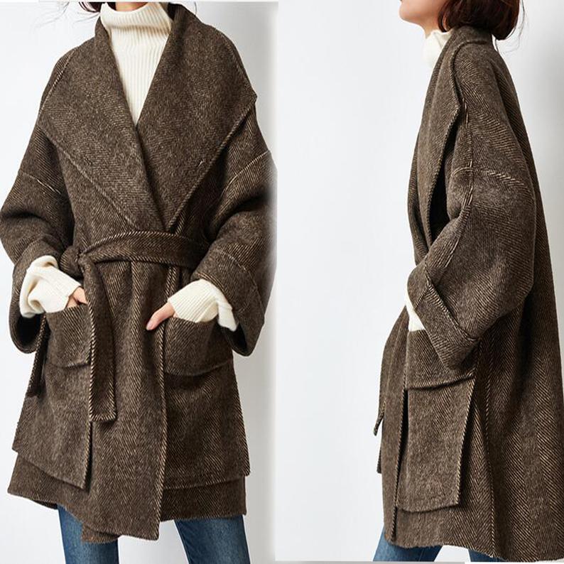 Double Face Women Coat ,Loose Wool Women Coat,Wool Coat Jacket With Waist Belt 10959