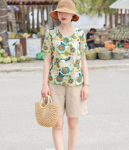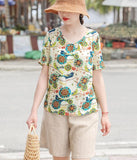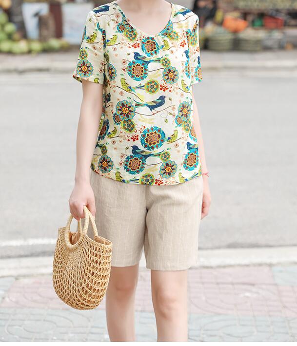 Floral Linen Blouse Simple Style Shirts Summer Tops SMM9508
