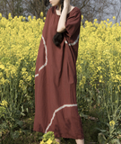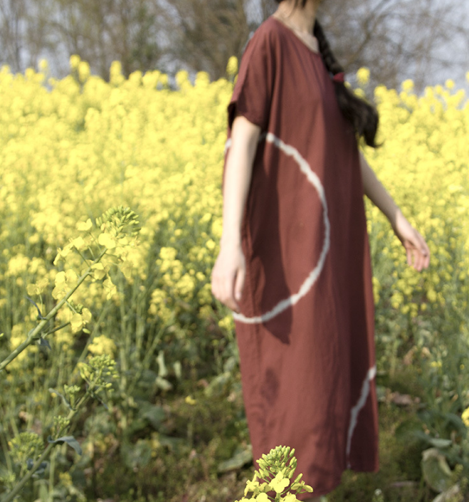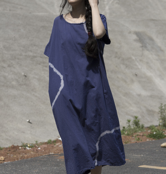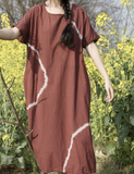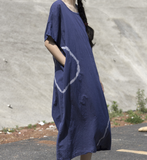 Loose Linen Cotton O Neck Quarters Sleeves Women Dress