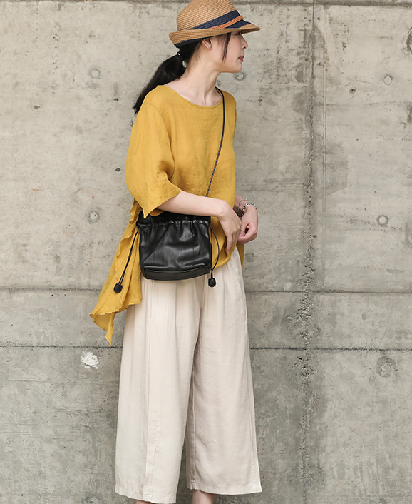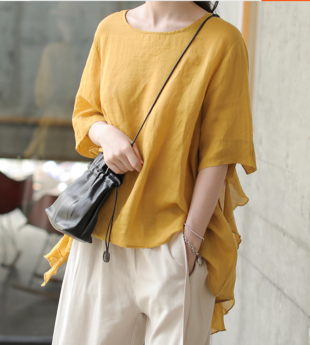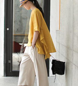 Yellow Spring Loose Women Casual Tunic Linen Shirts Women Tops