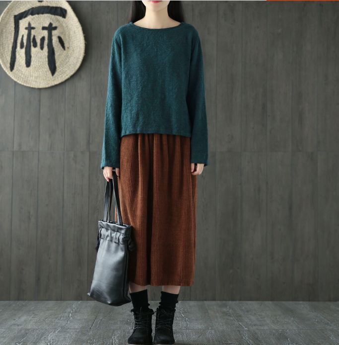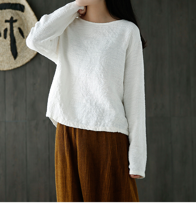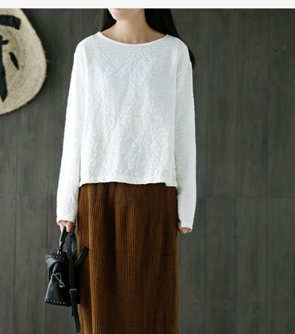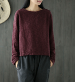 Loose O Neck Long Sleeves Knit T-Shirts Spring Tops H9508