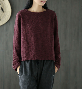 women linen tops puff sleeves design,loose fitting style ,silk cotton fabric ,soft and breathy,also very good for healthy,Loose style design make you looks very grace.