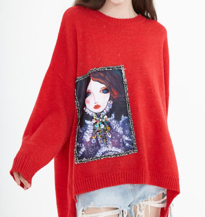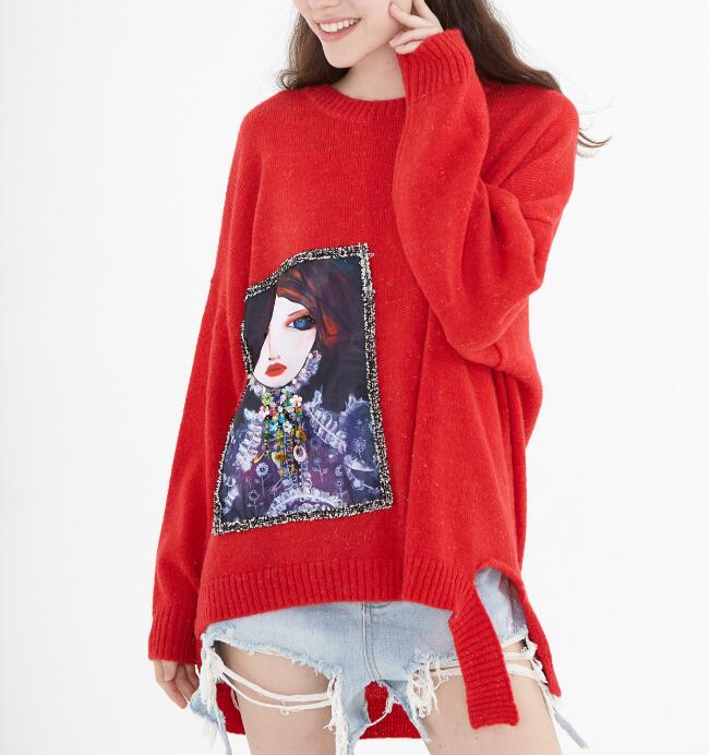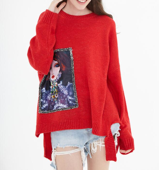 Irregular O Neck loose Women Tops Woolen Long Knit Sweater