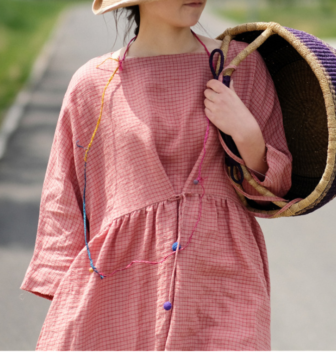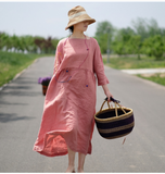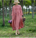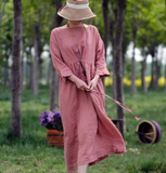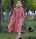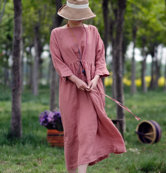 Pink Plaid Linen loose Summer Dress Maxi Women Dress XMLP9201229