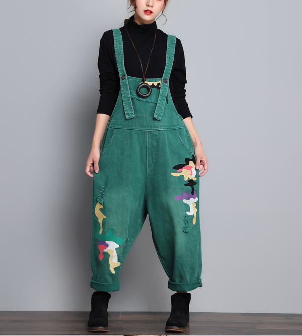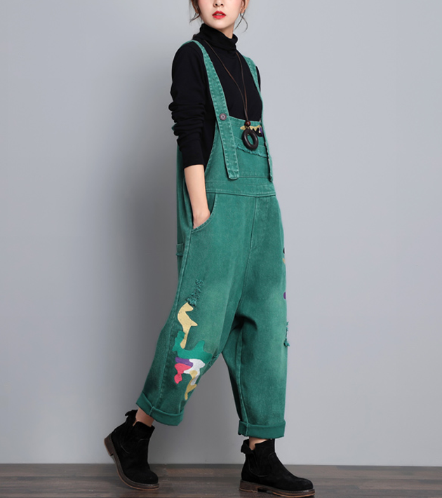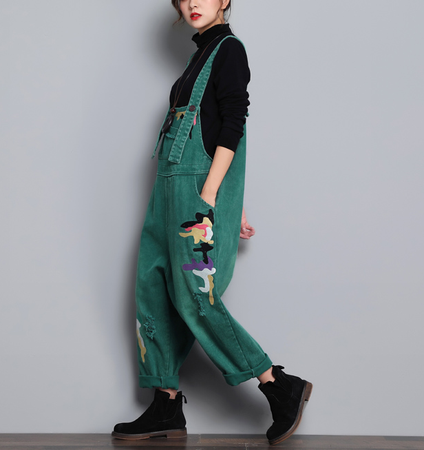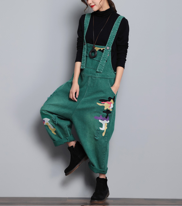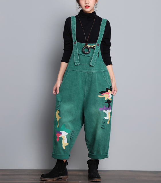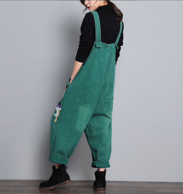 Green Denim Casual Spring Denim Overall Women Jumpsuits QY08