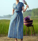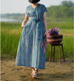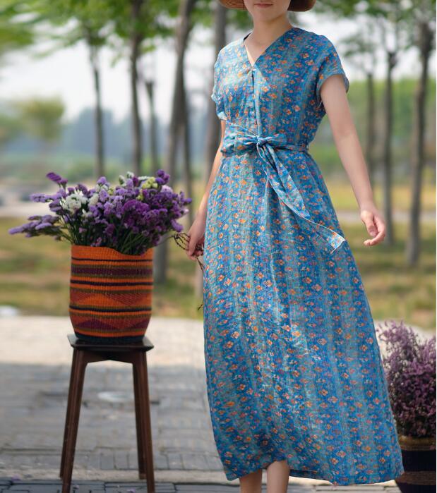 Floral Linen Long Sleeve Dress Loose Women Dress SJP9201229