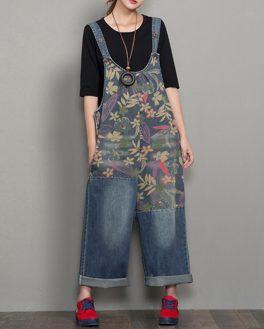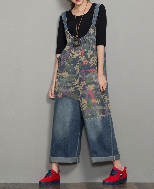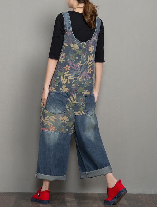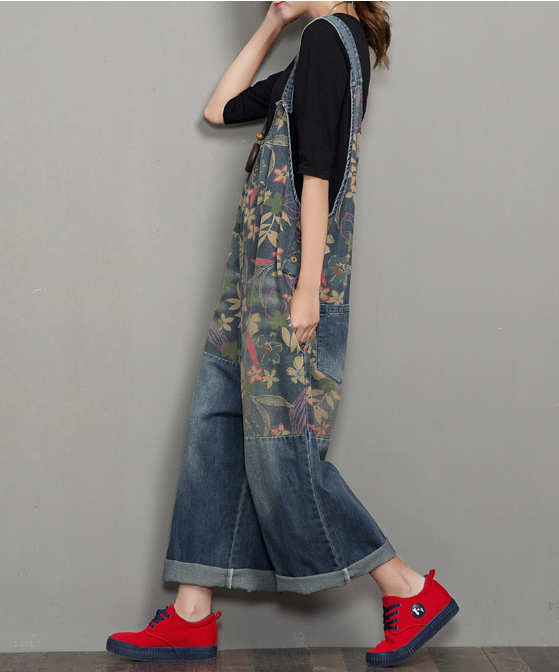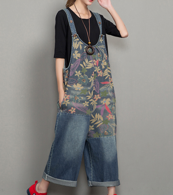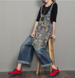 Floral Loose Handmade Denim Casual Spring Denim Overall Women Jumpsuits QY01