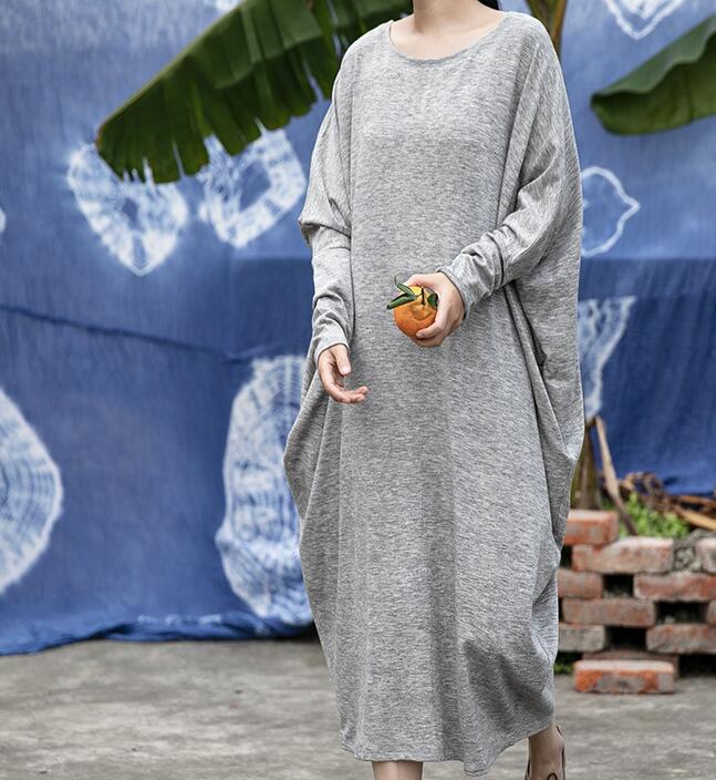 Gray Long Sleeve Women Dresses Casual Loose Women Dresses SSM97215