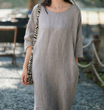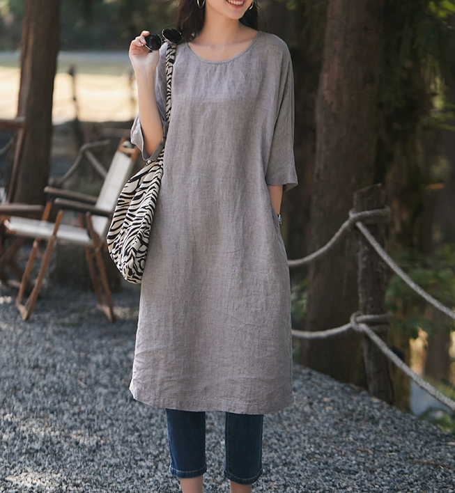 linen dresses with loose style.this women dresses is attractive with o neck line.also comfy to wear it.We could also custom made with any other colors and size.please feel free to chat with us.