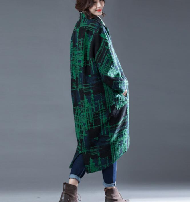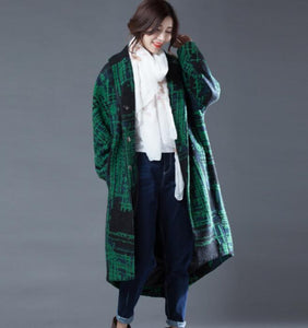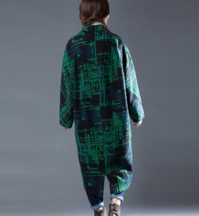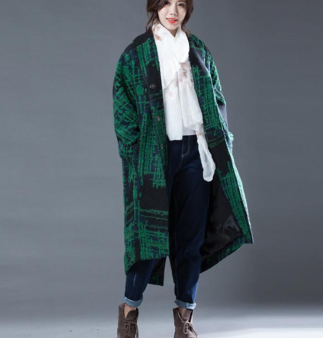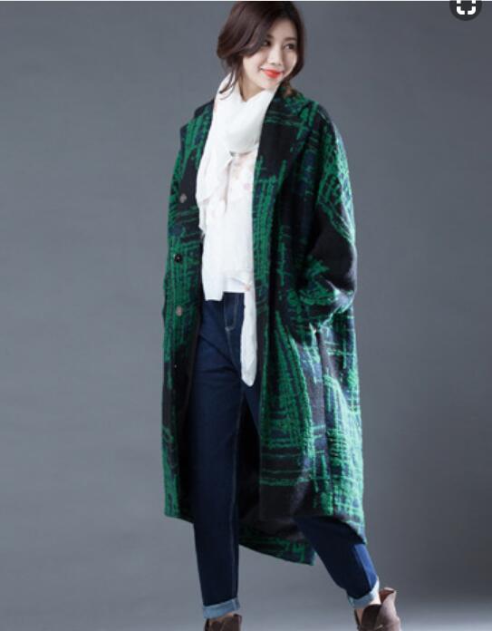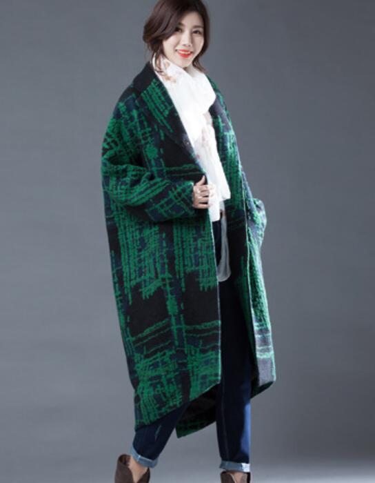 Green Women Coat Handmade Bat Sleeve loose Women Wool Coat Jacket