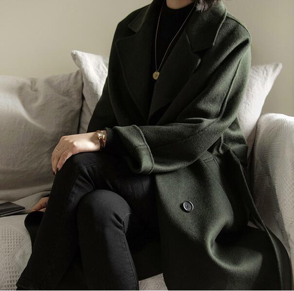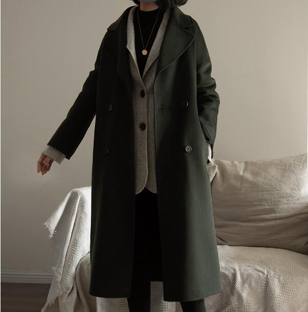 Winter Black Wool Coats Long Women Wool Coat Jacket/8900