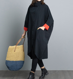 High Collar Patchwork Dresses Loose Fall Dresses Casual Women Dresses SSM97213