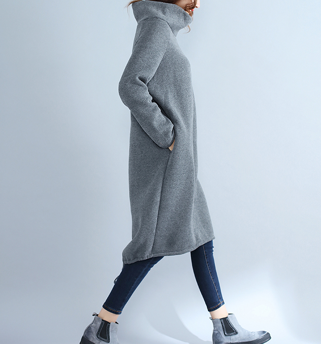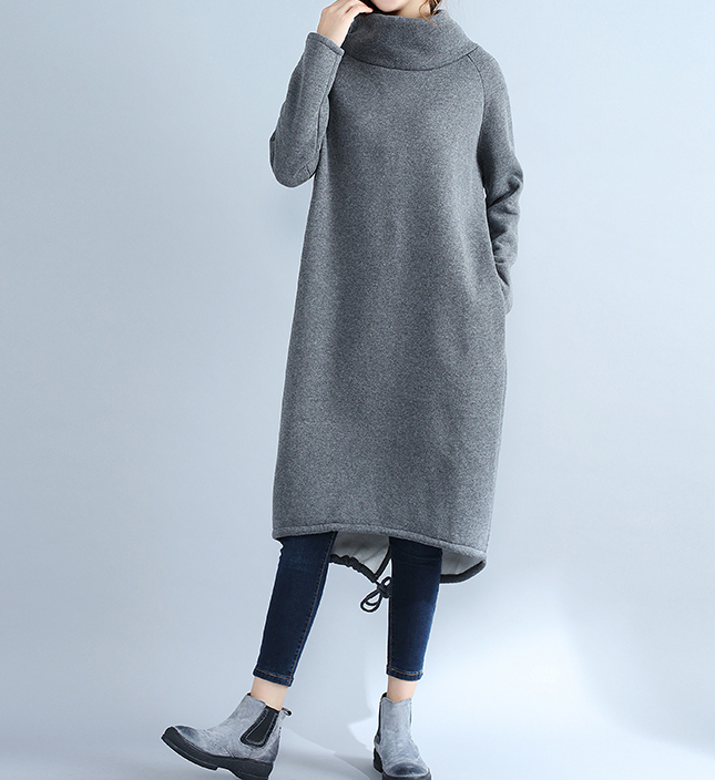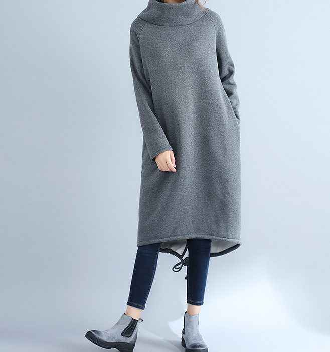 High Collar Fleece Loose Fall Dresses Casual Women Dresses SSM97213