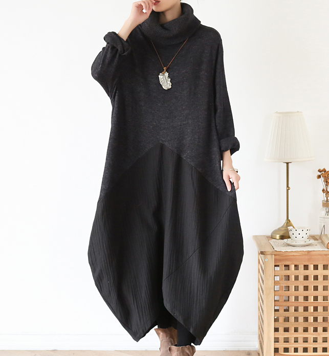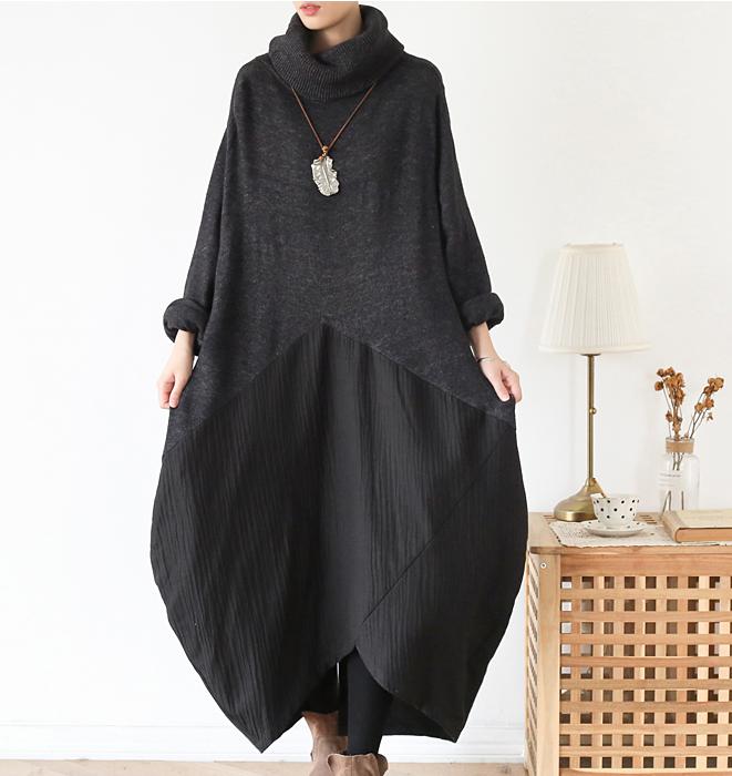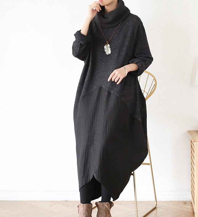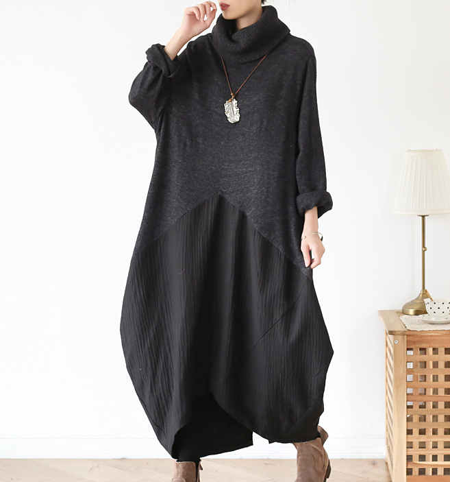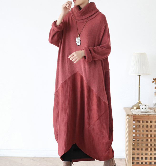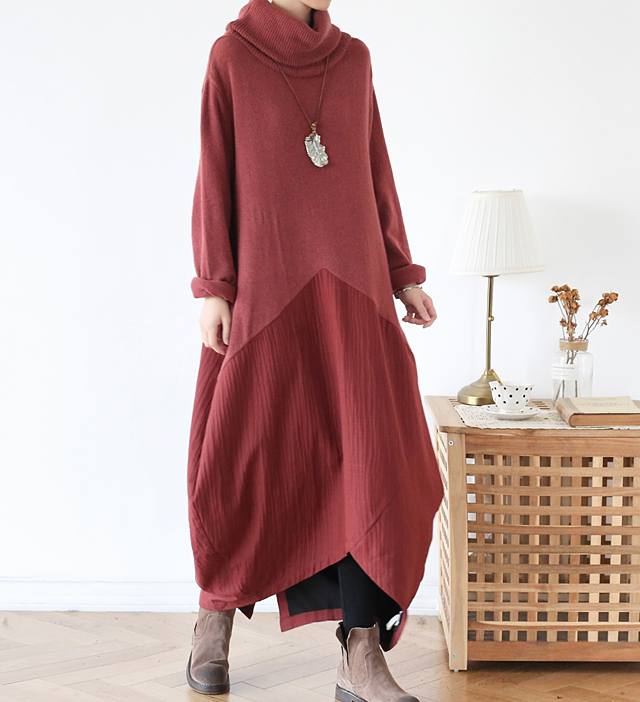 High Collar Patchwork Autumn Women Dresses Long Women DressesSSM97219