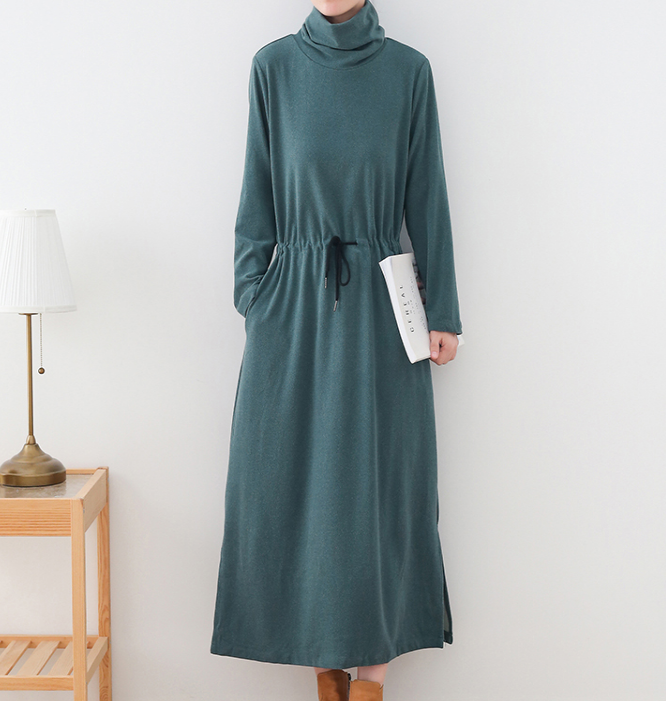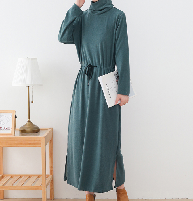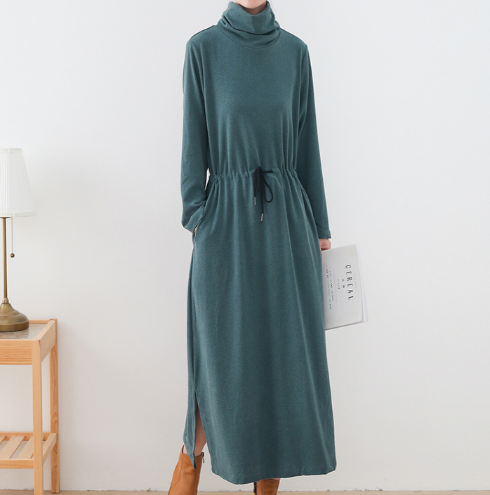 High Collar Side Slit Long Sleeve Women Dresses Casual Women Dresses SSM97215