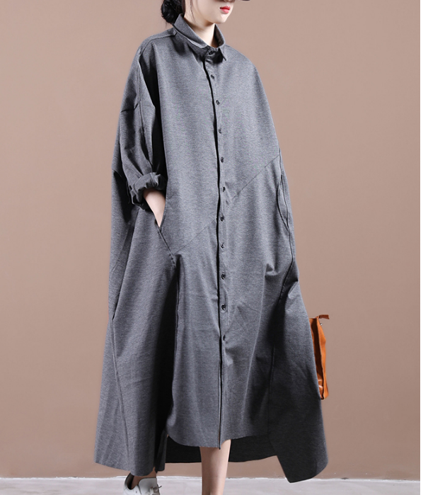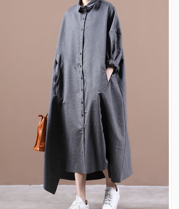 Gray Irregular Shirt Women Dresses Casual Fall Women Dresses WG97215