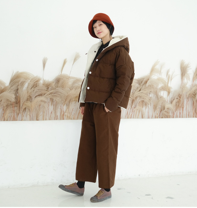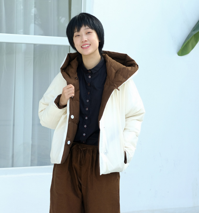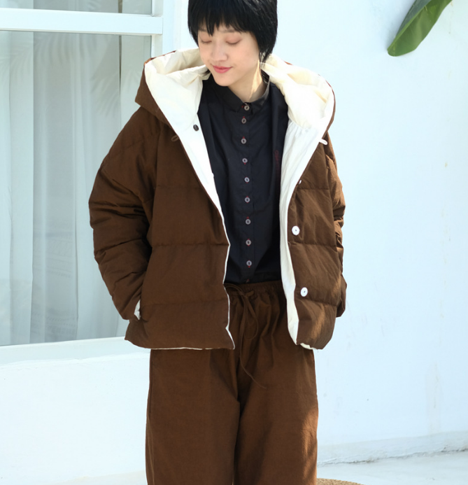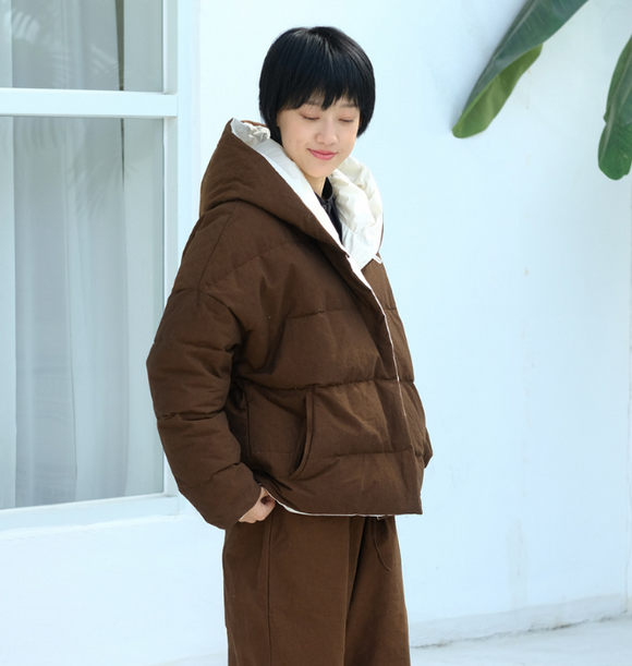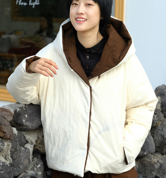Reversible Hooded Cotton Winter Down Jacket Women Down Coats