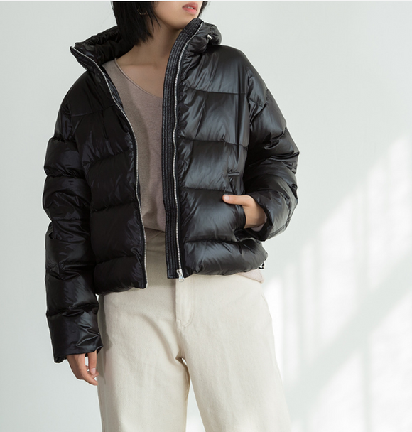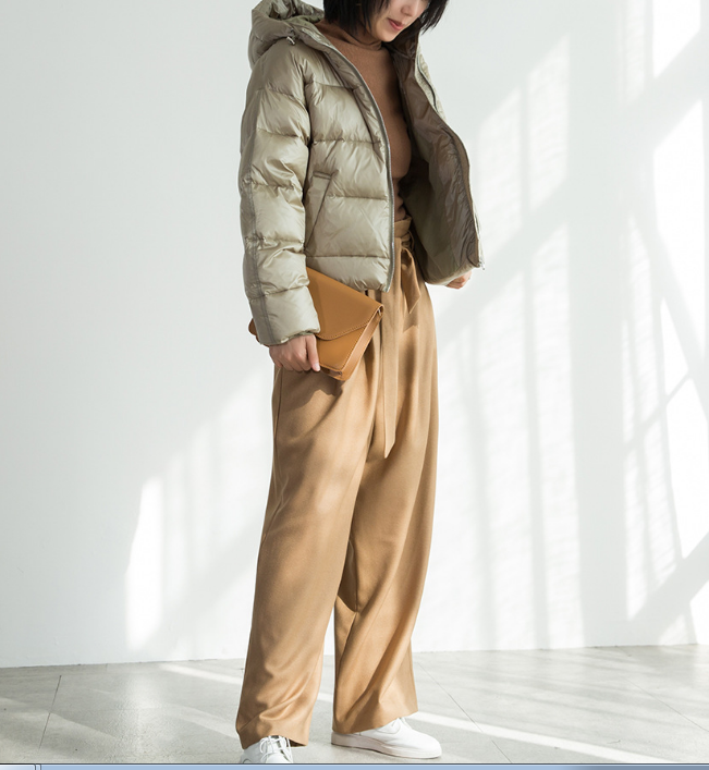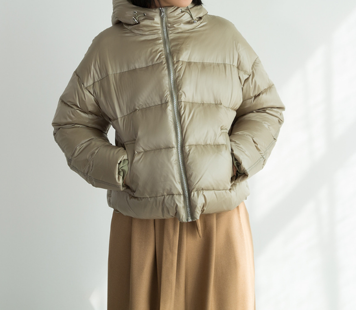 This is a winter down jacket fill with down.we design it with a very thick and warm style.this hooded down jacket could keep you very warm in the cold winter.the side pockets is very useful.a unique design women winter coat.