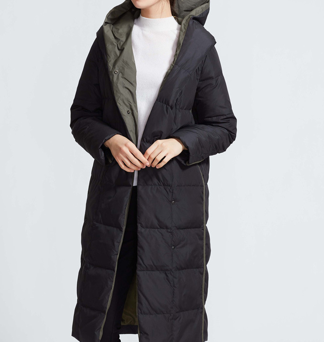 This is a winter down jacket fill with down.we design it with a very thick and warm style.this hooded down jacket could keep you very warm in the cold winter.the side pockets is very useful.a unique design women winter coat.