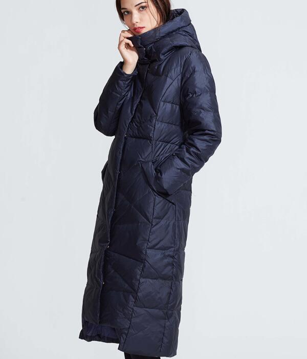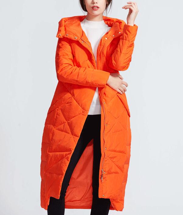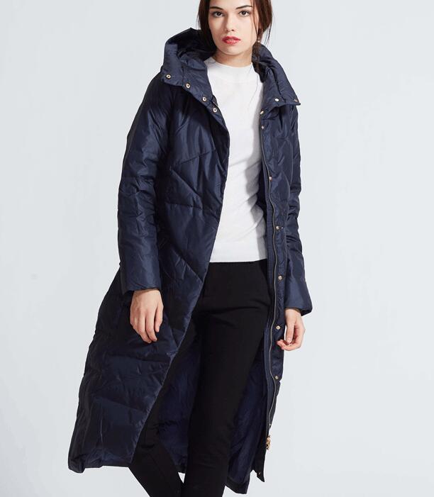 a winter down coat fill with down.we design it with a very thick and warm style.this hooded down jacket could keep you very warm in the cold winter.the side pockets is very useful.a unique design women winter coat.