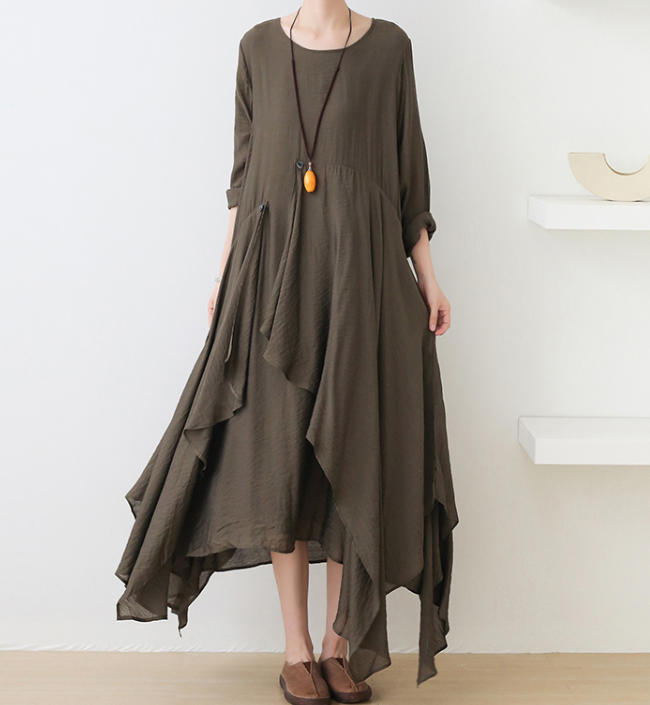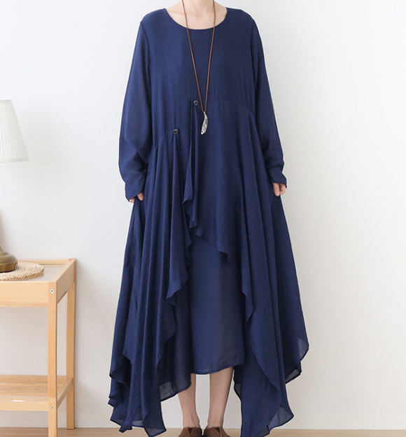 Irregular Hem Loose Plus Size Dress Women Autumn Spring Fashion Long Sleeve Dresses AMT962328